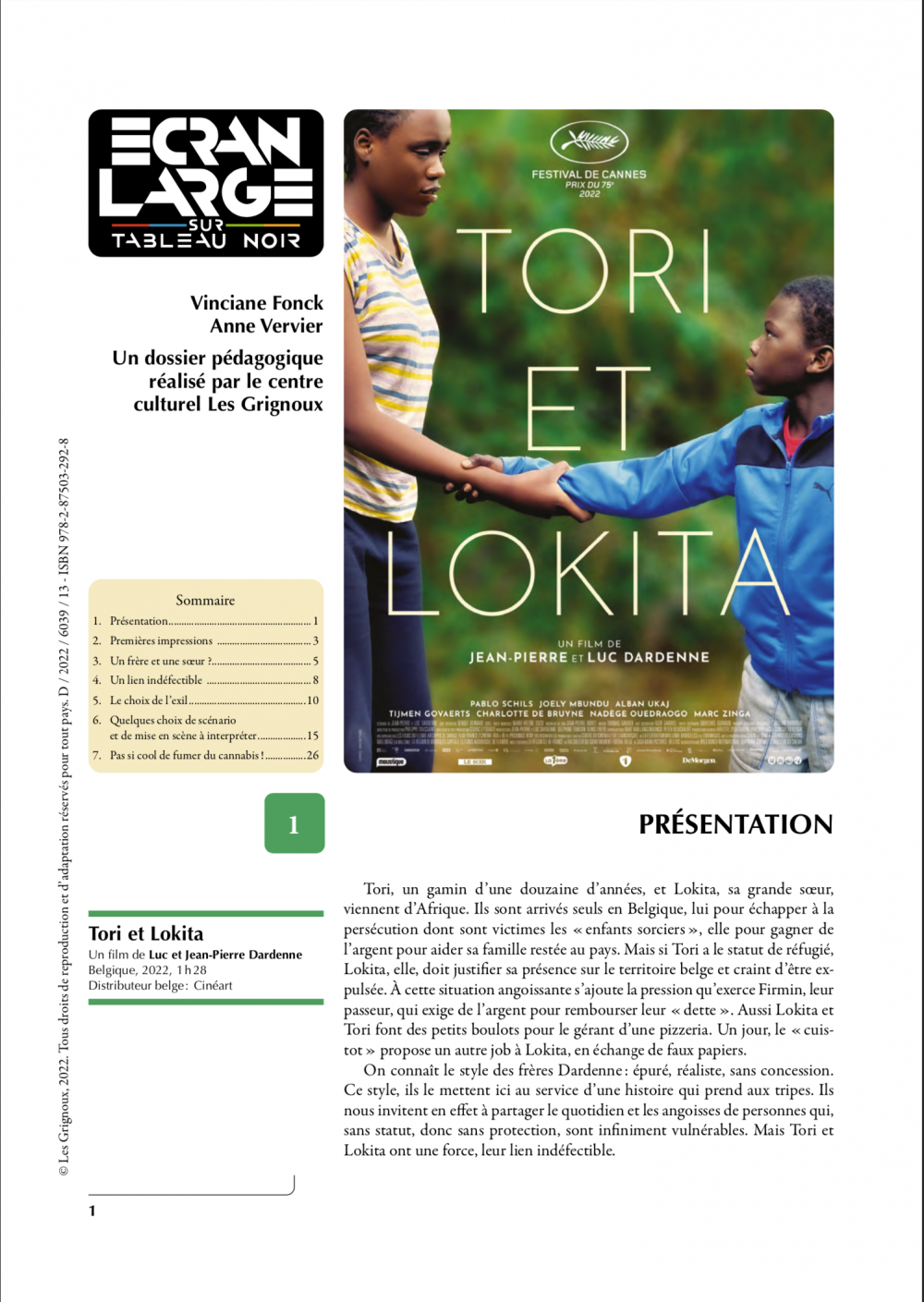 On connaiÌ‚t le style des freÌ€res Dardenne : épuré, réaliste, sans concession. Ce style, ils le mettent ici au service d’une histoire qui prend aux tripes. Ils nous invitent en effet à partager le quotidien et les angoisses de personnes qui, sans statut, donc sans protection, sont infiniment vulnérables. Mais Tori et Lokita ont une force, leur lien indéfectible. Tori et Lokita est un grand film humaniste et moral, qui dénonce certes les multiples pressions qui s’exercent sur les sans-papiers, mais surtout y oppose la force des sentiments et de la solidarité.