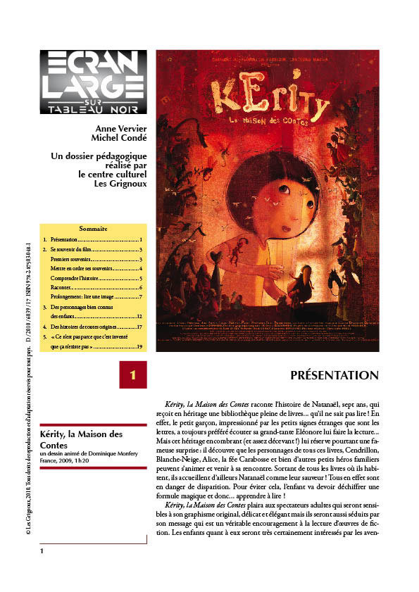 Kerity et la maison des contes devrait séduire les enfants qui débutent à l’école primaire grâce aux nombreuses péripéties que les petits héros rencontrent au cours du film, mais aussi au rendu nuancé des atmosphères et à l’univers haut en couleur où évoluent les personnages. Marqué par le thème de l’amitié et l’irruption du fantastique dans le quotidien le plus banal, l’univers poétique de Kerity évoque avec beaucoup de finesse le monde de l’enfance, de ses rêves et de ses besoins d’évasion. Le film donne par ailleurs une image très positive des livres et de la lecture, qui devrait en motiver l’apprentissage auprès des plus récalcitrants.